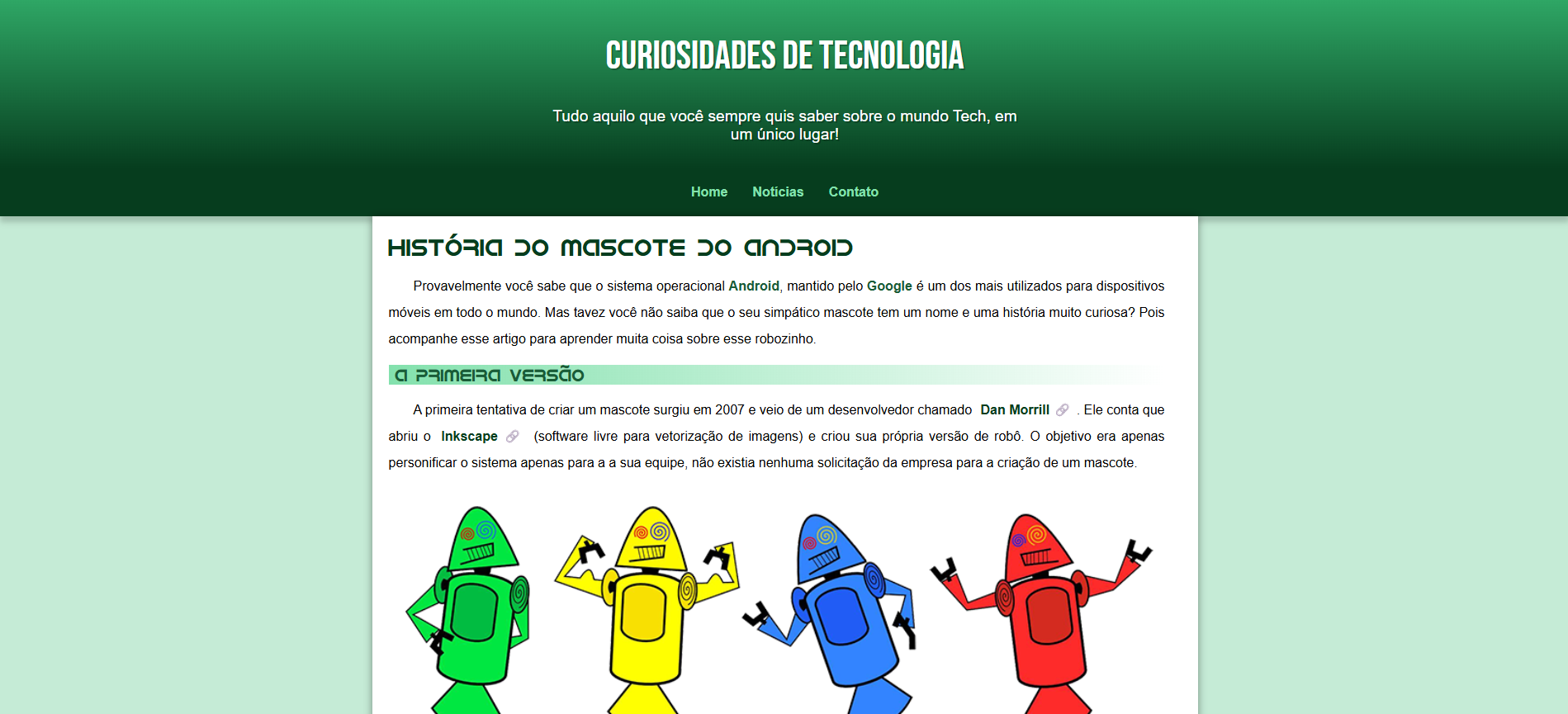 O site apresentado é um informativo das atualizações do sistema ANDROID.
