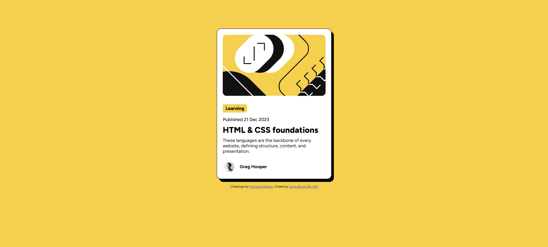 Aplicação simples e responsiva que exibe um cartão de pré-visualização de blog.